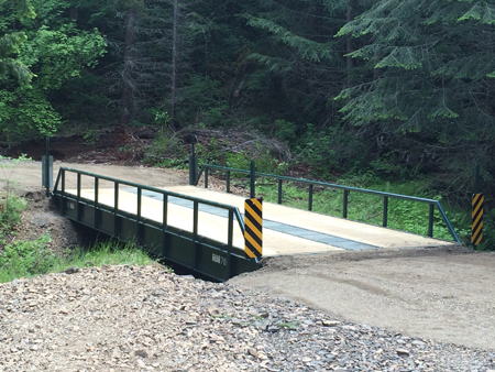 Description: A.D.M. Welding manufactures portable bridges used for temporary access. Our structures are typically installed with standard logging or excavating equipment in under one hour. They may also be used to “overlay” existing, inadequate bridges. Rentals and used bridges available. Built for repeated use at different locations. Permanent bridges quoted upon request. ADM Welding & Fabrication, LLC appears under these categories: Logging - Bridges/Road Mats |